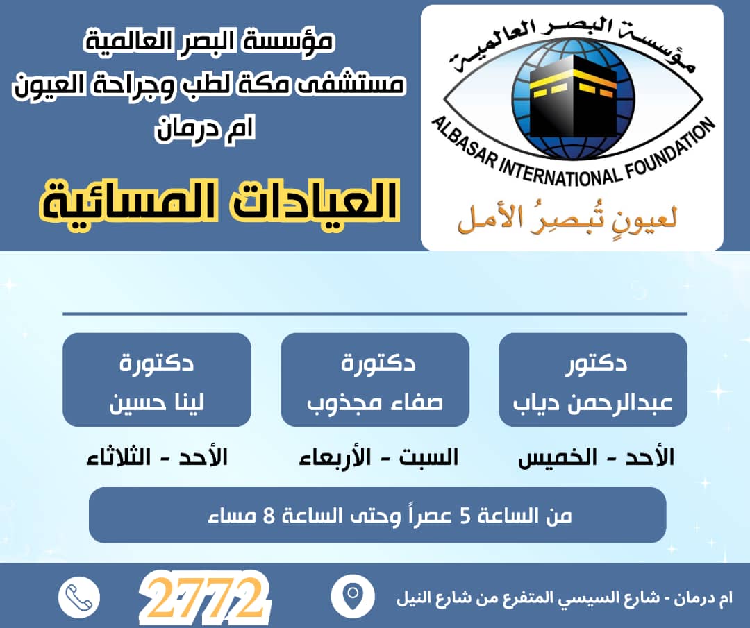 🩺 عيادات مسائية بمستشفى مكة – أم درمان 👁️