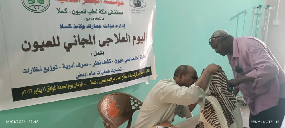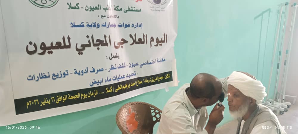 *مؤسسة البصر العالميةمستشفى مكة لطب وجراحة العيون – كسلا* 👁️🤍في إطار التعاون المستمر بين مؤسسة البصر العالمية ومؤسسات الدولة، وتعزيز ارتباطها بالمجتمع وخدمة الإنسان أينما كان،وبالتعاون مع جمارك المنطقة الشرقية – كسلا،تم بحمد الله إقامة يوم علاجي مجاني يوم الجمعة 16 يناير 2026مبـ مجمع الفريق شرطة/ صلاح أحمد إبراهيم.وجاء تنظيم هذا اليوم العلاجي استجابةً للكثافة العالية في تردد المرضى بالمنطقة، حيث شهد إقبالًا كبيرًا من المواطنين، عكس حجم الحاجة وأهمية هذه المبادرات الطبية.🔹 حصاد اليوم العلاجي:الكشف الطبي على 400 مريضتحديد 40 عملية جراحيةتحويل 60 مريضًا لمستشفى مكة لمواصلة العلاجتوزيع الأدوية اللازمةتوزيع 100 نظارة طبيةتحويل عدد من الحالات لمتابعة العلاج وإجراء العمليات بالمستشفىوقد شرف اليوم العلاجي حضور سعادة العميد/ عبد المجيد شيخ محمدمدير جمارك الولاية، الذي وقف ميدانيًا على هذا العمل الكبير، مشيدًا بالدور الإنساني والطبي الذي تقوم به مؤسسة البصر العالمية في خدمة المرضى بمختلف ولايات السودان.كل الشكر والتقدير لإدارة مستشفى مكة – كسلا،وللكادر الطبي المتميز بقيادة د. العوام،ولجمارك المنطقة الشرقية على هذا التعاون المثمر،ولكل من أسهم في إنجاح هذا اليوم العلاجي.✨ معًا نواصل رسالة البصر… ونزرع الأمل حيثما كان ✨#مؤسسة_البصر_العالمية#مستشفى_مكة_للطب_وجراحة_العيون_كسلا