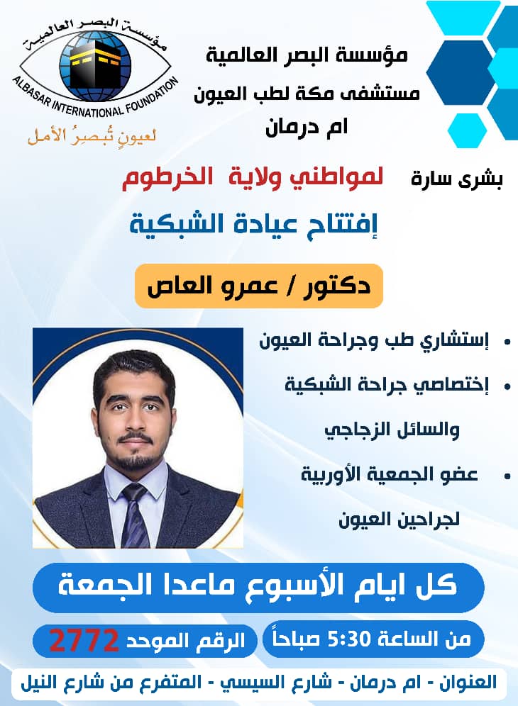 مستشفى مكة لطب العيون – أم درمان يعلن عن افتتاح عيادة الشبكية