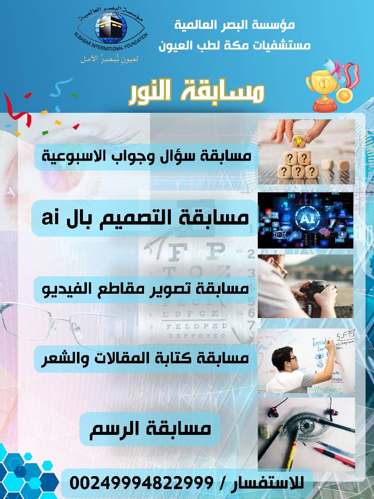 مؤسسة البصر العالمية و مستشفيات مكة لطب العيون، تطلق أكبر مسابقة جماهيرية 🏆🎁 جوائز قيّمة…